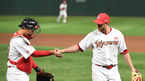 [OSEN=인천, 민경훈 기자] 7일 오후 인천 SK행복드림구장에서 열린 '2018 신한은행 MY CAR KBO 포스트시즌' 한국시리즈 3차전 SK 와이번스와 두산 베어스의 경기, 7회초를 마친 SK 선발 켈리가 이재원과 하이파이브를 하고 있다./rumi@osen.c