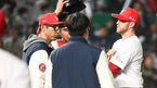 [OSEN=인천,박준형 기자] 2018 신한은행 MY CAR KBO 포스트시즌' 한국시리즈 3차전 SK 와이번스와 두산 베어스의 경기가 7일 오후 인천 미추홀구 문학동 인천 SK행복드림구장에서 열렸다.5회초 SK 손혁 투수 코치가 마운드에 올라 켈리와