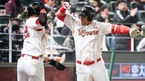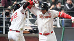 [OSEN=인천,박준형 기자] 2018 신한은행 MY CAR KBO 포스트시즌' 한국시리즈 3차전 SK 와이번스와 두산 베어스의 경기가 7일 오후 인천 미추홀구 문학동 인천 SK행복드림구장에서 열렸다.1회말 1사 1,2루 SK 로맥이 선취 3점 홈런을 날린뒤