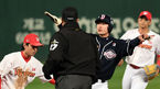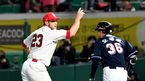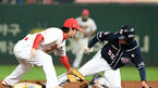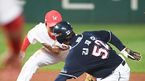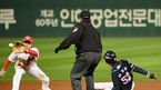 [OSEN=인천, 민경훈 기자] 7일 오후 인천 SK행복드림구장에서 열린 '2018 신한은행 MY CAR KBO 포스트시즌' 한국시리즈 3차전 SK 와이번스와 두산 베어스의 경기, 9회초 무사 주자 1루 두산 박세혁의 삼진 아웃때 1루 주자 김재호가 2루 도