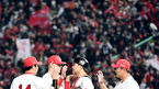 [OSEN=인천,박준형 기자] 2018 신한은행 MY CAR KBO 포스트시즌' 한국시리즈 3차전 SK 와이번스와 두산 베어스의 경기가 7일 오후 인천 미추홀구 문학동 인천 SK행복드림구장에서 열렸다.9회초 무사 1루 두산 박세혁의 삼진때 김성현 유