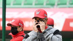 [OSEN=인천, 박재만 기자] '2018 신한은행 MY CAR KBO 포스트시즌' 한국시리즈 3차전 SK 와이번스와 두산 베어스의 경기가 7일 오후 인천 미추홀구 문학동 인천 SK행복드림구장에서 열린다.SK 힐만 감독이 훈련하는 선수들을 바라보고 있