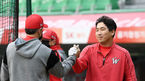 [OSEN=인천, 민경훈기자] 7일 오후 인천 SK행복드림구장에서 '2018 신한은행 MY CAR KBO 포스트시즌' 한국시리즈 3차전 SK 와이번스와 두산 베어스의 경기가 열릴 예정인 가운데 훈련이 진행됐다.SK 와이번스와 두산 베어스의 경기에 앞