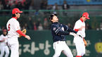 [OSEN=인천, 지형준 기자] 9일 오후 인천 SK행복드림구장에서 '2018 신한은행 MY CAR KBO 포스트시즌' 한국시리즈 4차전 SK 와이번스와 두산 베어스의 경기가 열렸다. 4회말 1사 1루에서 두산 오재일이 SK 김성현의 파울 플라이 타구를 처