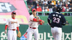 [OSEN=인천, 최규한 기자] 10일 오후 인천 SK행복드림구장에서 '2018 신한은행 MYCAR KBO리그 포스트시즌' 한국시리즈 5차전 SK 와이번스와 두산 베어스의 경기가 열렸다.7회초 1사 1루 상황 두산 허경민의 병살타 때 SK 2루구 강승호가 주