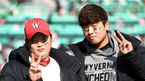 [OSEN=인천, 최규한 기자] 10일 오후 인천 SK행복드림구장에서 '2018 신한은행 MYCAR KBO리그 포스트시즌' 한국시리즈 5차전 SK 와이번스와 두산 베어스의 경기가 열린다.SK 김태훈과 김택형이 얼굴에 'V4 가자'를 함께 그린 뒤 취재진을