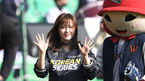 [OSEN=지형준 기자] 10일 오후 인천 SK행복드림구장에서 '2018 신한은행 MYCAR KBO리그 포스트시즌' 한국시리즈 5차전 SK 와이번스와 두산 베어스의 경기가 열렸다. 배우 구혜선이 시구를 하고 있다. /jpnews@osen.co.kr