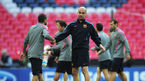 [OSEN=인천, 최규한 기자] 10일 오후 인천 SK행복드림구장에서 '2018 신한은행 MYCAR KBO리그 포스트시즌' 한국시리즈 5차전 SK 와이번스와 두산 베어스의 경기가 열린다.SK 힐만 감독이 마스크를 쓰고 선수들의 훈련을 바라보고 있다. /