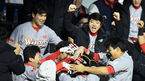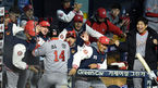 [OSEN=잠실, 박준형 기자] 12일 오후 서울 잠실구장에서 열린 '2018 신한은행 MYCAR KBO리그 포스트시즌' 한국시리즈 6차전 두산 베어스와 SK 와이번스의 경기, 9회초 2사 SK 최정의 동점 솔로홈런때 SK 선수들이 기뻐하고 있다. /soul1014@ose