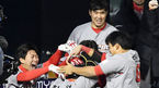 [OSEN=잠실, 이대선 기자] 12일 오후 서울 잠실야구장에서 '2018 신한은행 MY CAR KBO 포스트시즌' 한국시리즈 6차전 두산 베어스와 SK 와이번스의 경기가 열렸다.9회초 2사에서 SK 최정이 좌월 솔로 홈런을 치고 환호하고 있다./sunday@osen