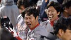 [OSEN=잠실, 이대선 기자] 12일 오후 서울 잠실야구장에서 '2018 신한은행 MY CAR KBO 포스트시즌' 한국시리즈 6차전 두산 베어스와 SK 와이번스의 경기가 열렸다.9회초 2사에서 SK 최정이 좌월 솔로 홈런을 치고 더그아웃에서 동료들의