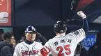 [OSEN=잠실, 박준형 기자] 12일 오후 서울 잠실구장에서 열린 '2018 신한은행 MYCAR KBO리그 포스트시즌' 한국시리즈 6차전 두산 베어스와 SK 와이번스의 경기, 6회말 1사 2,3루 두산 양의지의 동점 적시타때 기뻐하는 두산 더그아웃. /sou