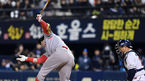 [OSEN=잠실, 박준형 기자] 12일 오후 서울 잠실구장에서 열린 '2018 신한은행 MYCAR KBO리그 포스트시즌' 한국시리즈 6차전 두산 베어스와 SK 와이번스의 경기, 6회말 1사 1,2루 두산 최주환이 1타점 2루타를 날리고 있다 /soul1014@osen.co.kr