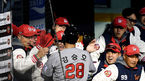 [OSEN=잠실, 민경훈 기자] 12일 오후 서울 잠실구장에서 열린 '2018 신한은행 MYCAR KBO리그 포스트시즌' 한국시리즈 6차전 두산 베어스와 SK 와이번스의 경기, 4회초 1사 주자 1루 SK 강승호가 좌월 투런 홈런을 날린 후 덕아웃에서 힐만