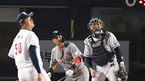 [OSEN=잠실, 이동해 기자] 12일 오후 서울 잠실구장에서 열린 '2018 신한은행 MYCAR KBO리그 포스트시즌' 한국시리즈 6차전 두산 베어스와 SK 와이번스의 경기, 4회초 2사 1루 SK 강승호에게 투런홈런 허용한 두산 양의지-이영하 배터리