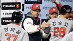[OSEN=잠실, 민경훈 기자] 12일 오후 서울 잠실구장에서 열린 '2018 신한은행 MYCAR KBO리그 포스트시즌' 한국시리즈 6차전 두산 베어스와 SK 와이번스의 경기, 4회초 1사 주자 1루 SK 강승호가 좌월 투런 홈런을 날린 후 덕아웃에서 힐만
