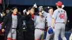 [OSEN=잠실, 민경훈 기자] 12일 오후 서울 잠실구장에서 열린 '2018 신한은행 MYCAR KBO리그 포스트시즌' 한국시리즈 6차전 두산 베어스와 SK 와이번스의 경기, 연장 11회말 2사 두산 김재호의 중견수 앞 안타때 2루수 강승호가 달려가고