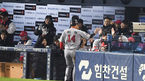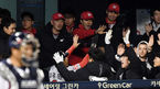 [OSEN=잠실, 박준형 기자] 12일 오후 서울 잠실구장에서 열린 '2018 신한은행 MYCAR KBO리그 포스트시즌' 한국시리즈 6차전 두산 베어스와 SK 와이번스의 경기, 1회초 무사 만루 SK 로맥이 선취 1타점 희생타때 SK 선수들이 기뻐하고 있다.