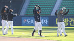 [OSEN=잠실, 이대선 기자] 12일 오후 서울 잠실야구장에서 열릴 '2018 신한은행 MY CAR KBO 포스트시즌' 한국시리즈 6차전 두산 베어스와 SK 와이번스의 경기에 앞서 두산 최주환이 훈련을 하고 있다./sunday@osen.co.kr