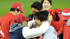 [OSEN=잠실, 박준형 기자] SK 와이번스가 한국시리즈 우승컵을 들어올렸다.12일 오후 서울 잠실야구장에서 벌어진 '2018 신한은행 MY CAR KBO 포스트시즌' 한국시리즈 6차전에서 SK는 13회 터진 한동민의 결승 홈런으로 두산을 꺽고 우승
