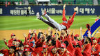 [OSEN=잠실, 이대선 기자] K 와이번스가 한국시리즈 우승컵을 들어올렸다.12일 오후 서울 잠실야구장에서 벌어진 '2018 신한은행 MY CAR KBO 포스트시즌' 한국시리즈 6차전에서 SK는 13회 터진 한동민의 결승 홈런으로 두산을 꺽고 우승