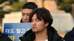[OSEN=박재만 기자] 한국프로야구선수협의회-한국프로야구은퇴선수협회-일구회 등 야구 관련 단체들이 14일 오후 서울 종로구 효자동 삼거리 분수광장에서 경찰 야구단 인원 감축 재고를 촉구하는 집회를 열었다.거리로 나온 야