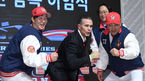 [OSEN=인천, 최규한 기자] 15일 오후 인천 문학경기장 그랜드 오스티엄에서 'SK 트레이 힐만 전 감독 이임 및 염경엽 감독 취임식'이 열렸다.SK 힐만 전 감독과 최항-정의윤이 퍼포먼스를 선보이고 있다. /dreamer@osen.co.kr