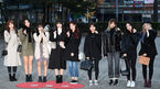 [OSEN=민경훈 기자] 16일 오전 서울 영등포구 여의도 KBS 신관공개홀에서 진행된 뮤직뱅크 출근길 행사에서 그룹 트와이스가 포즈를 취하고 있다. /rumi@osen.co.kr