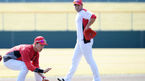 [OSEN=가고시마, 이동해 기자] SK 와이번스가 18일 일본 가고시마현 싸스마센다이에 차려진 특별 캠프에서 마무리 훈련을 진행했다.SK 김성현-강승호가 염경엽 감독의 포구 자세를 바라보고 있다. / eastsea@osen.co.kr