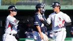 [OSEN=미야자키, 이동해 기자] 23일 일본 미야자키현 휴가시의 오쿠라 가하마구장에서 kt 위즈와 두산 베어스의 연습경기가 진행됐다.5회말 kt 김태훈이 투런홈런을 쏘아올린 후 팀원들과 하이파이브를 하고 있다. / eastsea@osen.co.kr