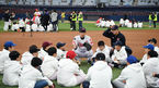 [OSEN=고척, 곽영래 기자] 한국프로야구선수협회와 함께하는 2018 유소년야구클리닉 '빛을 나누는 날' 행사가 4일 오후 서울 고척스카이돔에서 열렸다.LG 임찬규, 넥센 김재현이 참가 학생들과 몸 풀기 게임을 하고 있다./ youngrae@osen