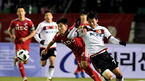 [OSEN=부산, 곽영래 기자] 6일 오후 부산 구덕운동장에서 '2018 K리그 승강 플레이오프 1차전' 부산 아이파크와 FC 서울의 경기가 열렸다.전반 부산 권진영과 FC 서울 운주태가 볼 다툼을 하고 있다./ youngrae@osen.co.kr