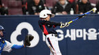 [OSEN=고척, 민경훈 기자] 9일 오후 서울 고척스카이돔에서 '양준혁재단 제7회 2018 희망더하기 자선야구대회'가 열렸다. 7회초 1사 주자 1루 종범신팀 홍성흔 아들 홍화철이 안타를 날리고 있다./rumi@osen.co.kr