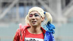 [OSEN=고척, 민경훈 기자] 9일 오후 서울 고척스카이돔에서 '양준혁재단 제7회 2018 희망더하기 자선야구대회'가 열렸다. 3회초 2사 종범신팀 김용의가 할리퀸 복장을 하고 투수 땅볼을 날린 후 하이힐을 벗고 달려나오고 있다./rumi@o