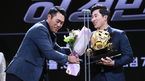[OSEN=박준형 기자] 10일 서울 삼성동 코엑스 오디토리움에서 진행된 2018 KBO 골든글러브 시상식에서 3루수 부문 골든글러브상을 수상한 허경민이 조성환 코치의 축하를 받고 있다. / soul1014@osen.co.kr
