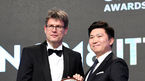 [OSEN=지형준 기자] 12일 오후 인천 그랜드하얏트호텔에서 열린 2018 ITTF 월드투어 그랜드파이널스 국제탁구대회 전야제 스타어워즈 시상식에서 혼합복식 경기에 출전하는 한국 장우진과 북한 차효심이 포즈를 취하고 있다. /jpnews