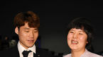 [OSEN=지형준 기자] 12일 오후 인천 그랜드하얏트호텔에서 열린 2018 ITTF 월드투어 그랜드파이널스 국제탁구대회 전야제 스타어워즈 시상식에서 혼합복식 경기에 출전하는 한국 장우진과 북한 차효심이 포즈를 취하고 있다. /jpnews