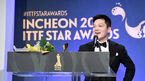 [OSEN=지형준 기자] 12일 오후 인천 그랜드하얏트호텔에서 열린 2018 ITTF 월드투어 그랜드파이널스 국제탁구대회 전야제 스타어워즈 시상식에서 중국 판젠동이 남자스타상을 수상하고 있다. /jpnews@osen.co.kr