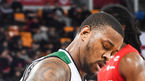 [OSEN=잠실학생체,박준형 기자] 12일 오후 서울 잠실학생체육관에서 열린 '2018-2019 SKT 5GX 프로농구 서울 SK와 원주 DB의 경기, 3쿼터 DB 포스터가 골밑슛을 성공시킨뒤 주먹을 불끈 쥐고 있다. / soul1014@osen.co.kr