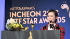 [OSEN=지형준 기자] 12일 오후 인천 그랜드하얏트호텔에서 열린 2018 ITTF 월드투어 그랜드파이널스 국제탁구대회 전야제 스타어워즈 시상식에서 중국 딩닝이 여자스타상을 수상하고 있다. /jpnews@osen.co.kr