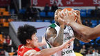 [OSEN=잠실학생체,박준형 기자] 12일 오후 서울 잠실학생체육관에서 열린 '2018-2019 SKT 5GX 프로농구 서울 SK와 원주 DB의 경기, 3쿼터 SK 송창무와 DB 포스터가 충돌하고 있다. / soul1014@osen.co.kr