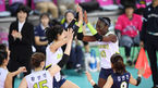 [OSEN=계양, 곽영래 기자] 15일 오후 인천 계양체육관에서 '도드람 2018-2019 V리그' 여자부 흥국생명과 현대건설의 경기가 열렸다.2세트 현대건설 선수단이 득점을 올린 뒤 기뻐하고 있다. / youngrae@osen.co.kr