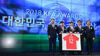 [OSEN=최규한 기자] 18일 오후 서울 종로구 JW메리어트 동대문 스퀘어 서울에서 '2018 KFA 어워즈' 시상식이 열렸다.정몽규 대한축구협회 회장과 부회장단이 대한민국 축구공헌대상으로 선정한 대한민국 축구팬들을 위한 기념 유니