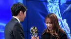 [OSEN=최규한 기자] 18일 오후 서울 종로구 JW메리어트 동대문 스퀘어 서울에서 '2018 KFA 어워즈' 시상식이 열렸다.올해의 선수상을 수상한 인천현대제철 장슬기가 시상자로 나선 대한축구협회 정몽규 회장에게 트로피를 전달받고
