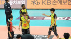 [OSEN=안산, 곽영래 기자] 우리카드 20일 안산 상록수체육관에서 열린 '도드람 2018-2019 V리그' 남자부 OK저축은행과의 경기에서 세트 스코어 3-2(25-23, 25-19, 15-25, 21-25, 15-13)로 승리했다.경기에서 패한 OK저축은행 선수단이 아쉬워하고