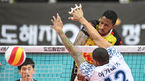 [OSEN=안산, 곽영래 기자] 20일 오후 안산 상록수체육관에서 '도드람 2018-2019 V리그' 남자부 OK저축은행과 우리카드의 경기가 열렸다.2세트 OK저축은행 요스바니가 스파이크를 때리고 있다. / youngrae@osen.co.kr