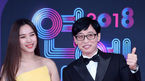 [OSEN=민경훈 기자] 22일 오후 서울 영등포구 여의도 KBS 본관 로비에서 진행된 '2018 KBS 연예대상' 포토월 행사에서 유재석과 조윤희가 포토타임을 갖고 있다./ rumi@osen.co.kr