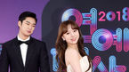 [OSEN=민경훈 기자] 22일 오후 서울 영등포구 여의도 KBS 본관 로비에서 진행된 '2018 KBS 연예대상' 포토월 행사에서 뮤직뱅크 팀인 최원명과 러블리즈 케이가 포토타임을 갖고 있다./ rumi@osen.co.kr