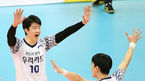 [OSEN=의정부, 박재만 기자] '도드람 2018-2019 V리그' 남자부 KB손해보험과 우리카드의 경기가 23일 오후 경기도 의정부시 녹양동 의정부실내체육관에서 열렸다.우리카드 윤봉우가 득점후 한호하고 있다. /pjmpp@osen.co.kr