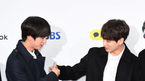 [OSEN=지형준 기자] 가수 방탄소년단 정국, RM이 25일 오후 서울 고척스카이돔에서 열린 '2018 SBS 가요대전'에 참석해 레드카펫 행사를 갖고 있다. /jpnews@osen.co.kr